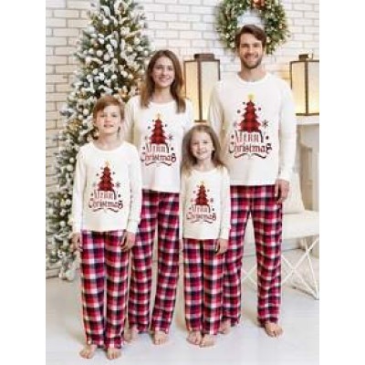 Cozy Merry Christmas Family Matching Pajamas Set For The Whole Family,Christmas Tree Letter Print Long